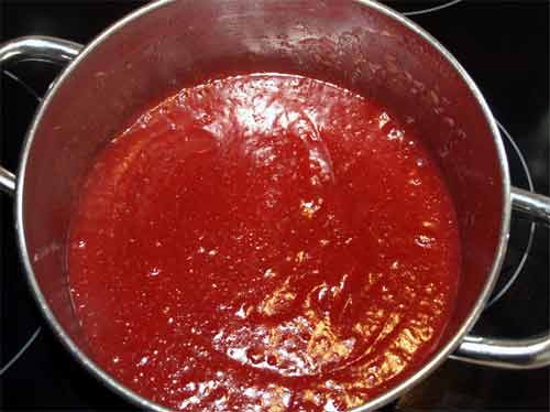 Ich habe nach einer Möglichkeit gesucht, Erdbeeren und Rhabarber in einem Erdbeer-Rhabarber-Kuchen zusammenzubringen. Dabei wollte ich keine Erdbeerstücke mitbacken, weil gebackene Erdbeeren eine unansehnliche Masse bilden. Daher werden bei diesem Erdbeer-Rhabarber-Kuchen Rezept die frischen Erdbeeren püriert, mit Speisestärke eingedickt, und auf den Rhabarber gegeben. Die Speisestärke bindet beim Backen die Rhabarber-Flüssigkeit und so wird der Erdbeer-Rhabarber-Kuchen nicht zu feucht.